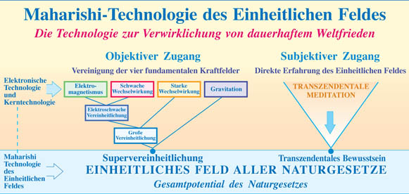 In ähnlicher Weise vermitteln die Transzendentale Meditation und das TM-Sidhi Programm die direkte Erfahrung ruhigerer, tieferer Ebenen von Gedanken – was letztlich seinen Höhepunkt in der Erfahrung des Einheitlichen Feldes an der Basis von Geist und Materie hat. Durch die Praxis in der Gruppe wird dieses universale, einheitliche Feld kollektiven Bewusstseins angeregt, was zu einem Einfluss von Kohärenz in der gesamten Gesellschaft führt.