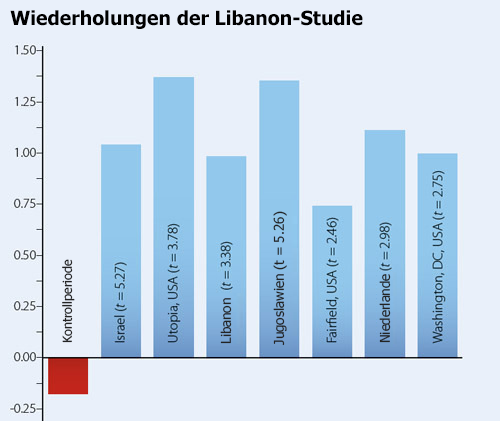 Während des Libanon-Krieges in den 80er Jahren zeigten Untersuchungen unter anderem einen 76%igen Rückgang an Kriegstoten.