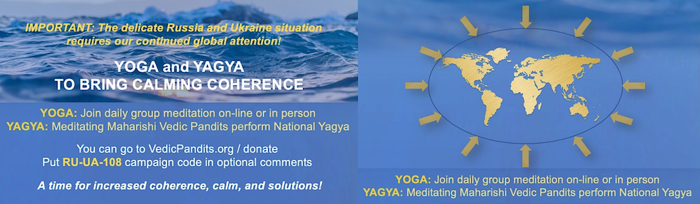 Please note that we do not take sides or carry any political prejudices. As advised by Maharishi we always want the best outcome for least suffering and an increase of coherence to avert unnecessary friction, fear, and loss on all sides. Maharishi Yagya helps to bridge what is unfathomable for human comprehension.