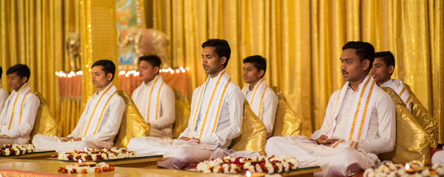 The training begins at an early age, where children begin to learn from their parents. Young boys from Pandit families join Maharishi’s formal training program in their local areas around the age of 10 in one of many “Guru Ji” training centers. Around the age of 14, the young Pandits-in-training move on to one of the residential training campuses in various parts of the country. Generally, from there they move on to one of the main Maharishi Vedic Pandit campuses. The Pandits are all enrolled in Maharishi Mahesh Yogi Vedic Vishwavidyalaya, a chartered university. Their systematic training continues through the PhD level. Our Pandits all practice the Transcendental Meditation® and TM-Sidhi® programs.